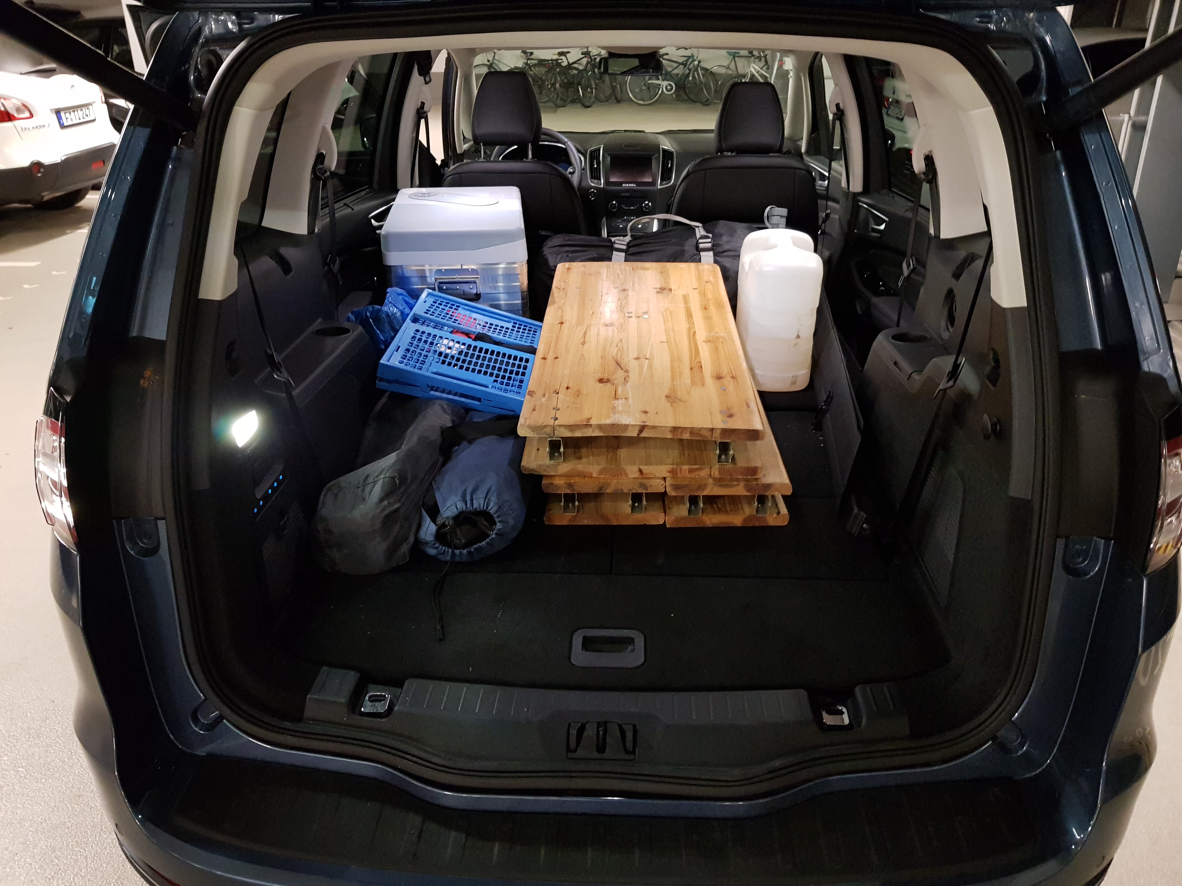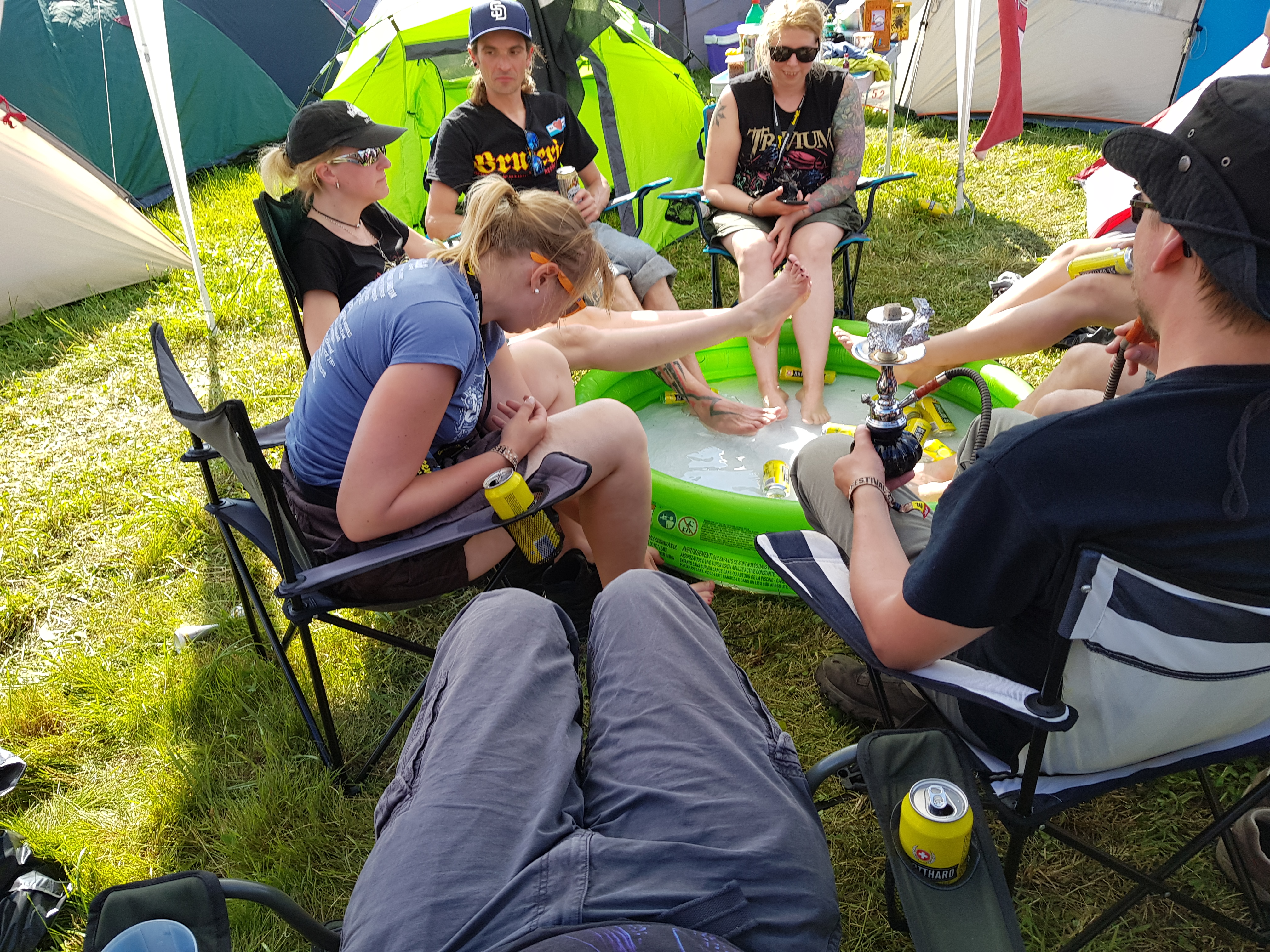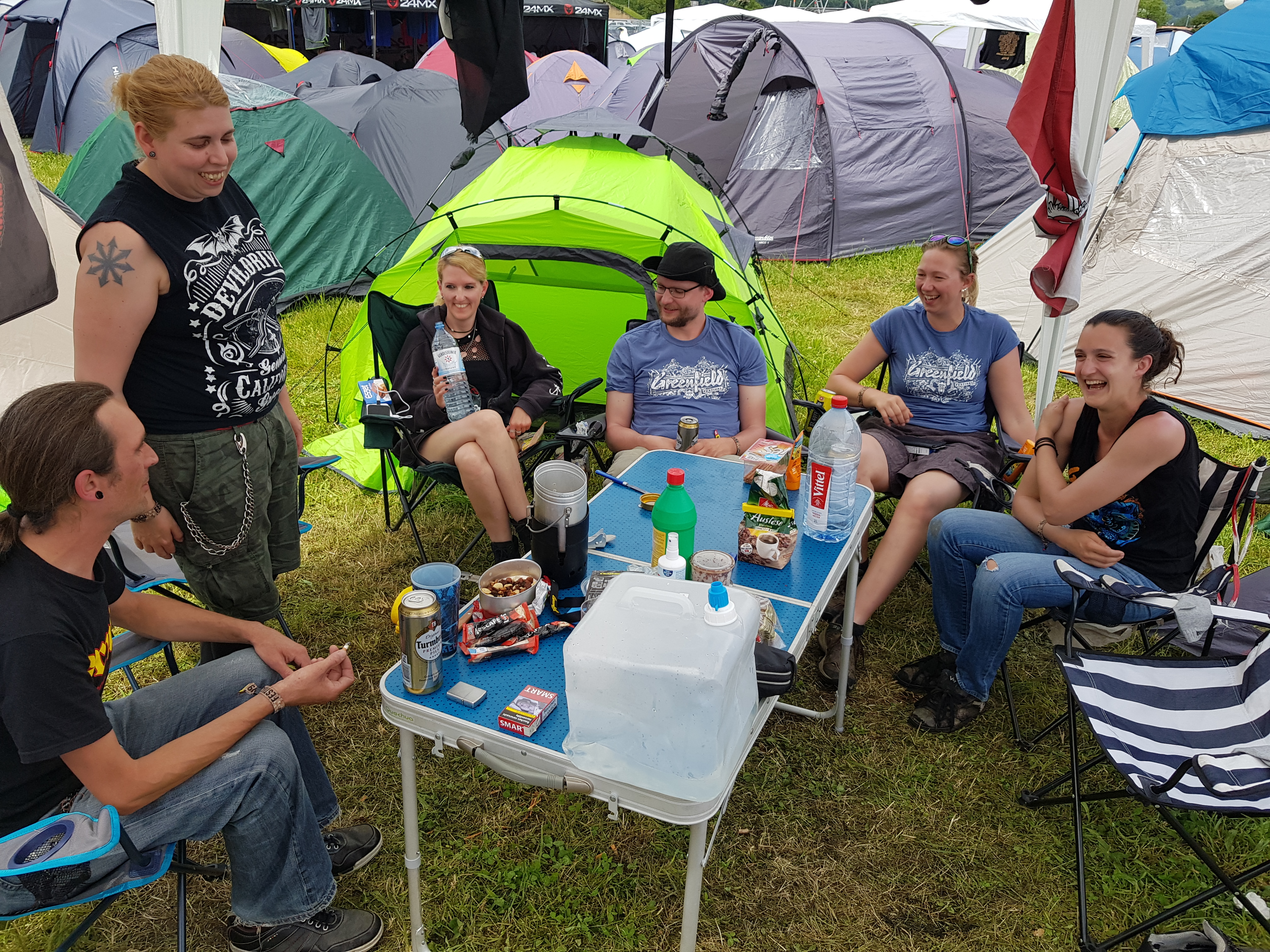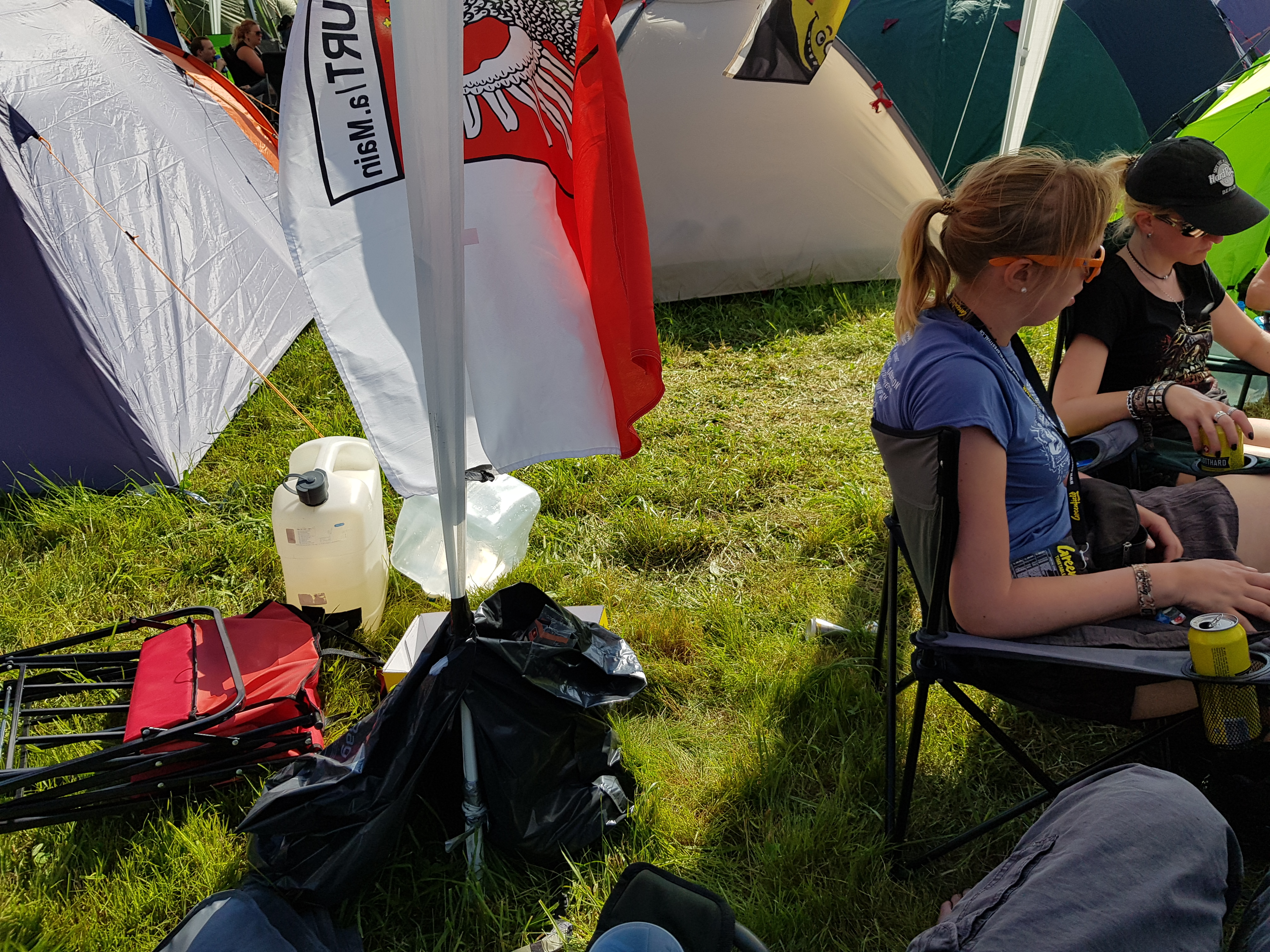 Parkplatz war auf der Startbahn und die Zelte stehen auf den Grünflächen zwischen der Bahn, den Taxiways und dem Vorfeld (wo auch das Konzertgelände ist). Man sollte also so Packen dass alles mit dem Bollerwagen transportiert werden kann.