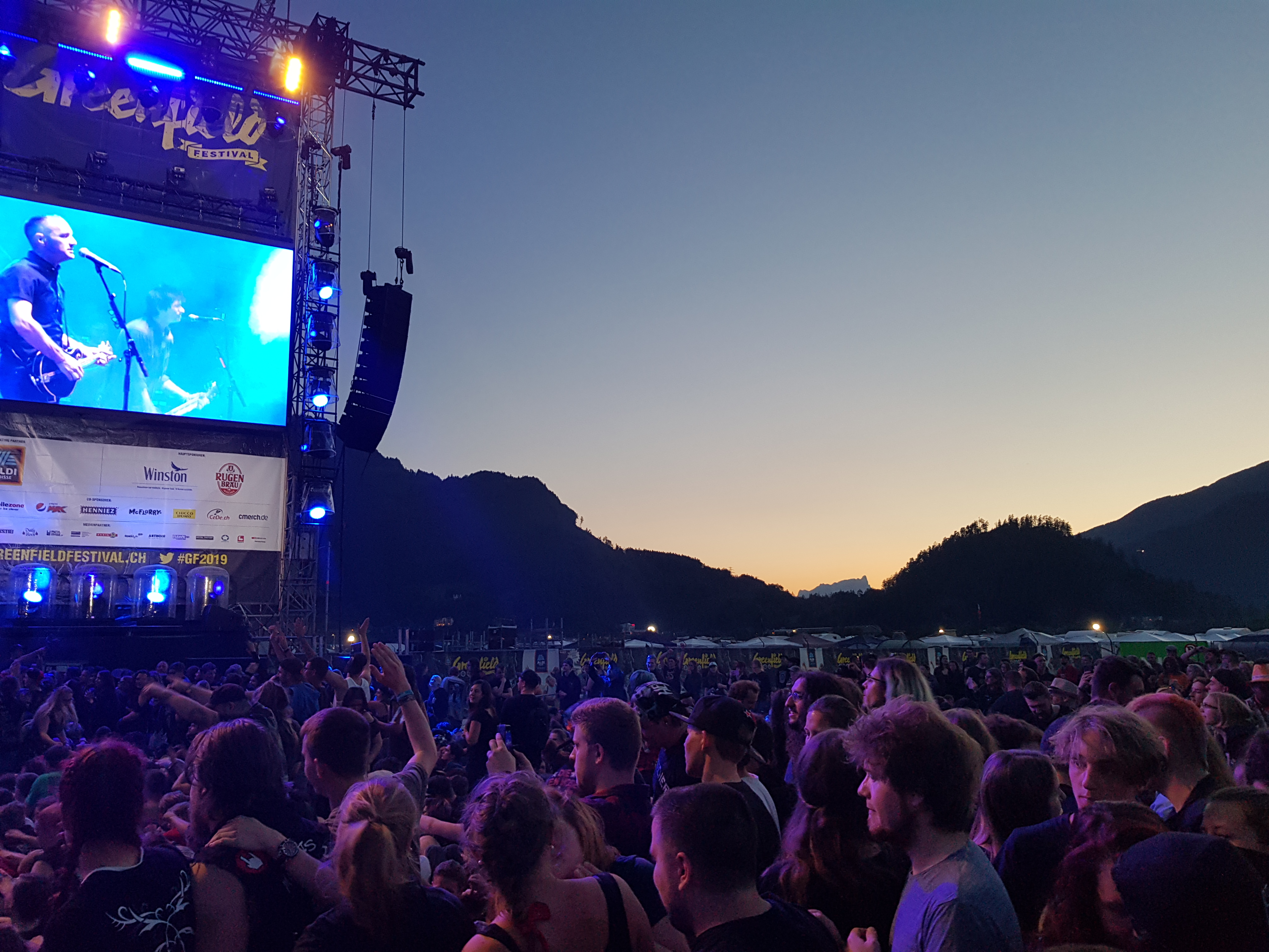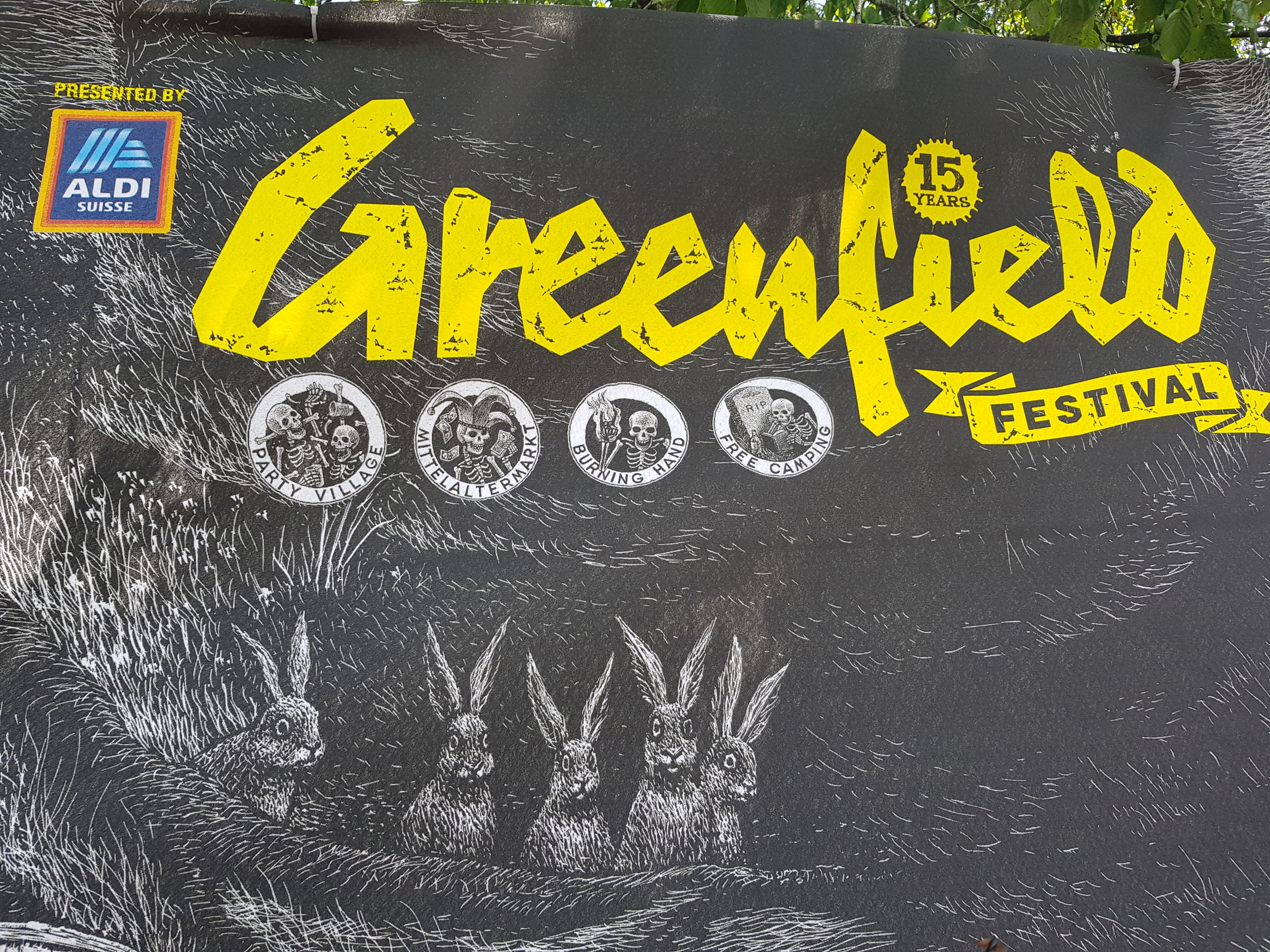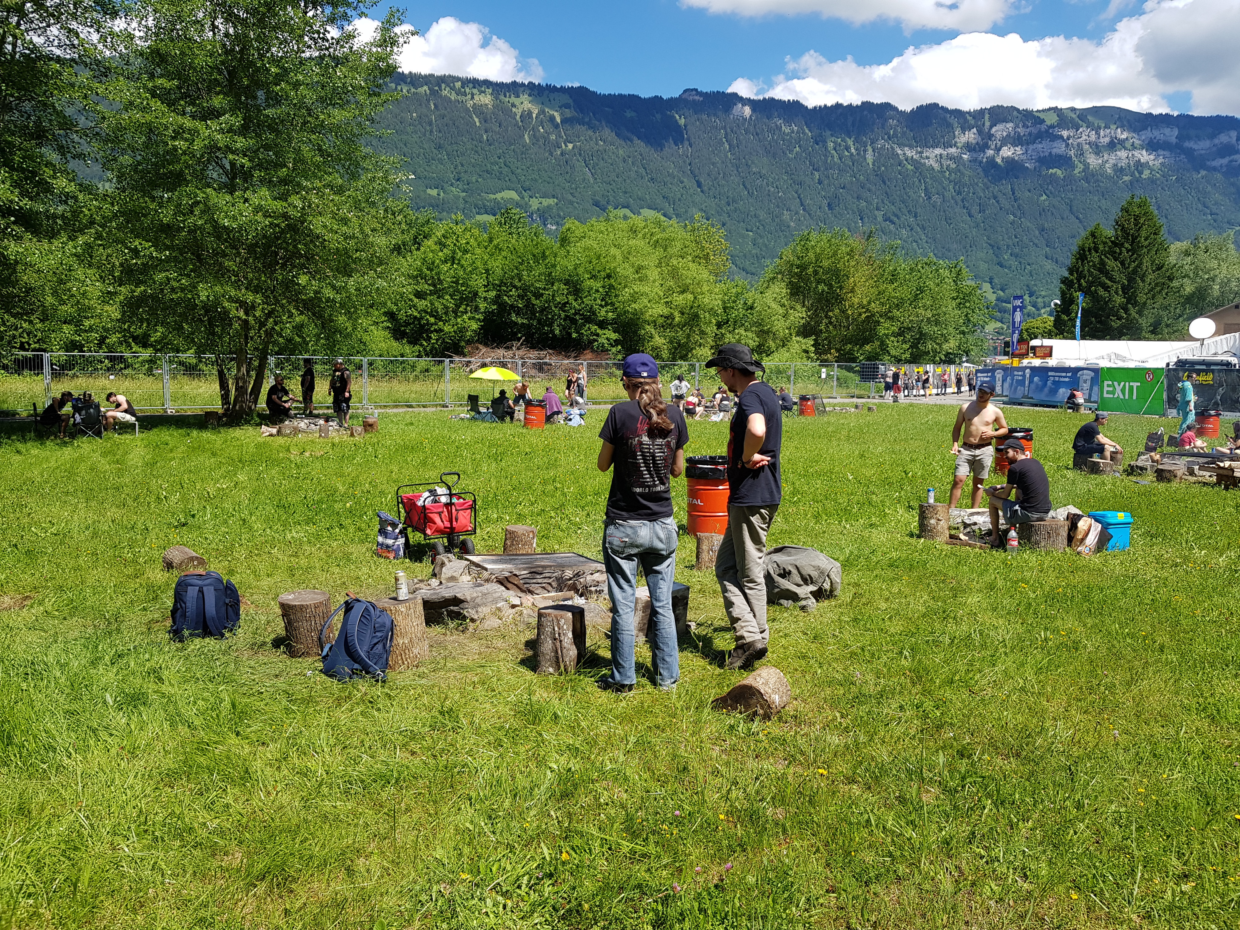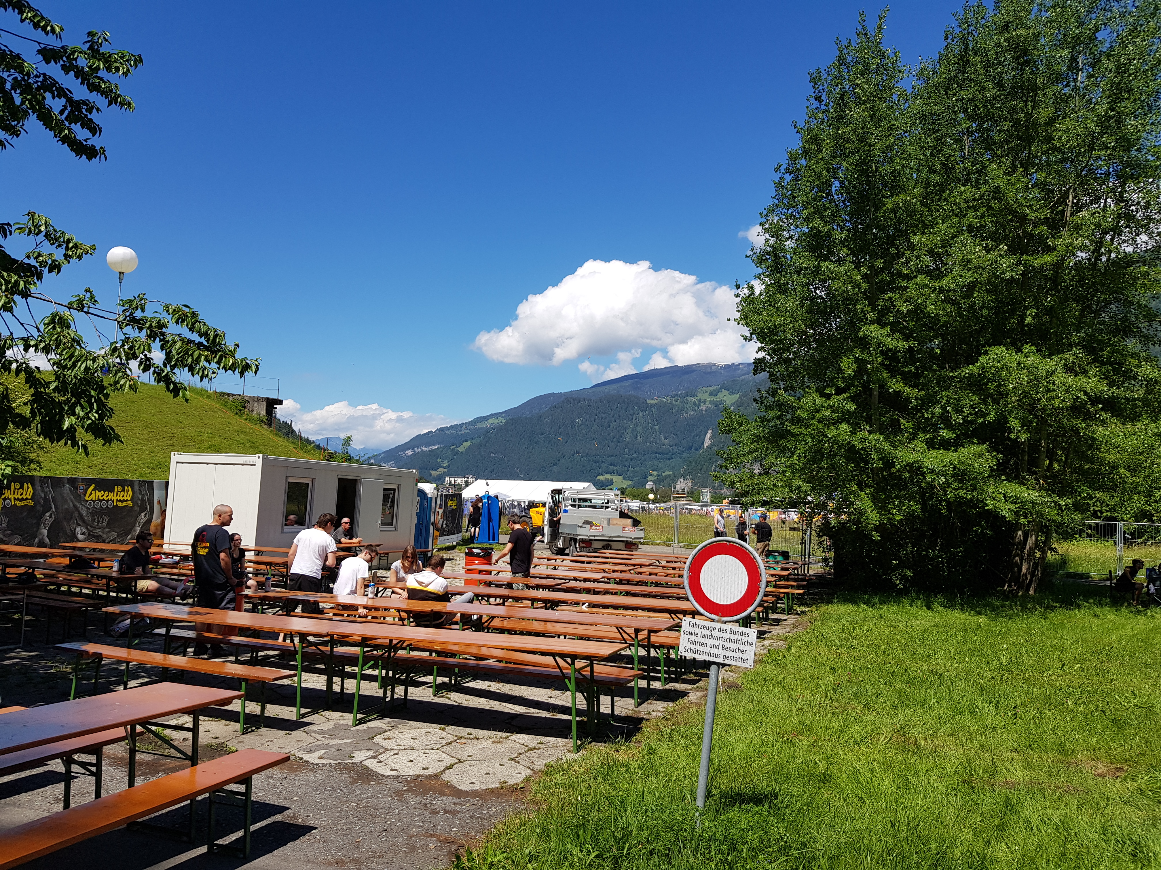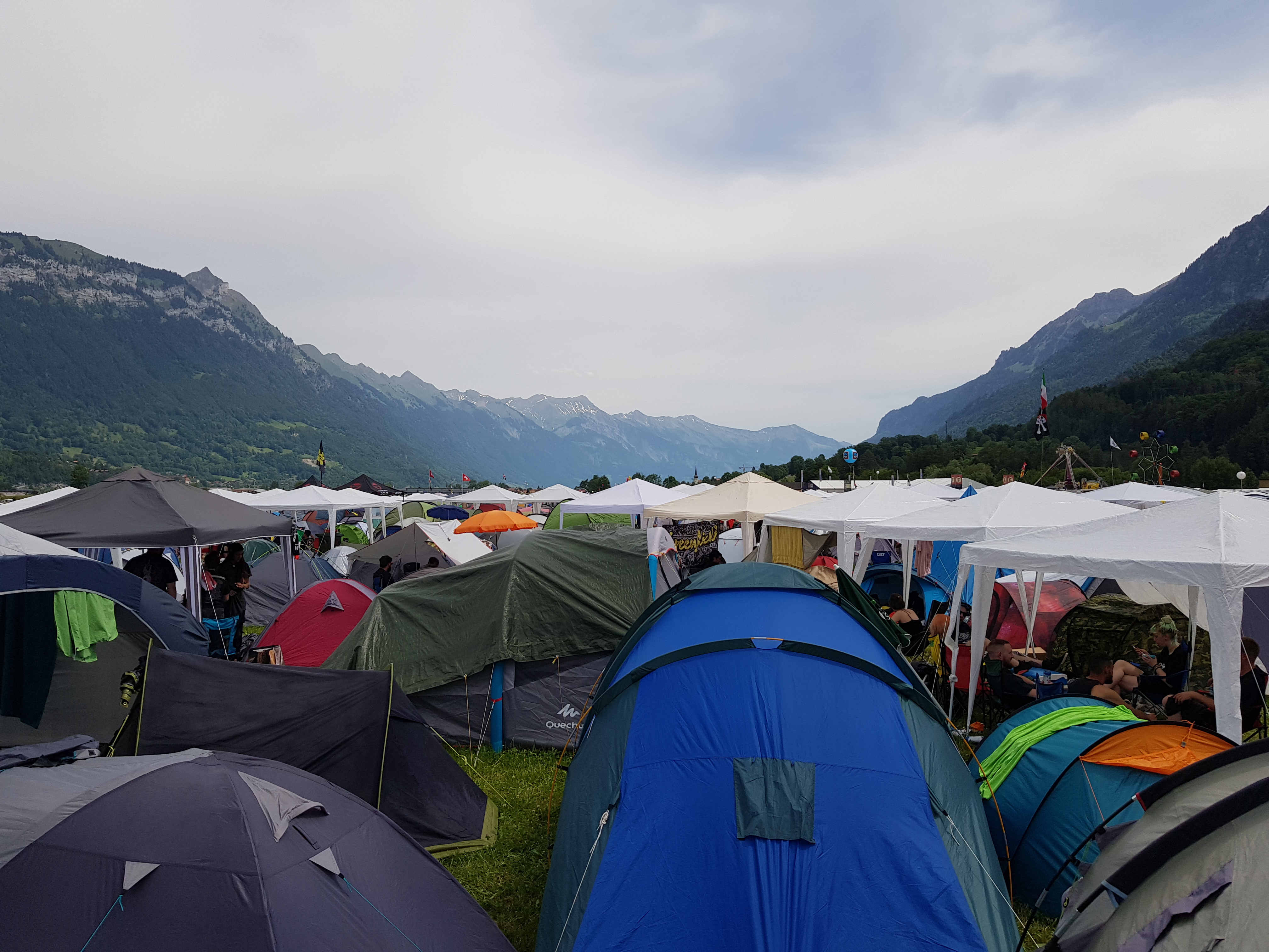 Das Festival findet auf dem ehemaligen Flugplatz Interlaken statt, mitten in den Schweizer Alpen. Eine nette Kulisse mit dem Eiger hinter der Main-Stage.