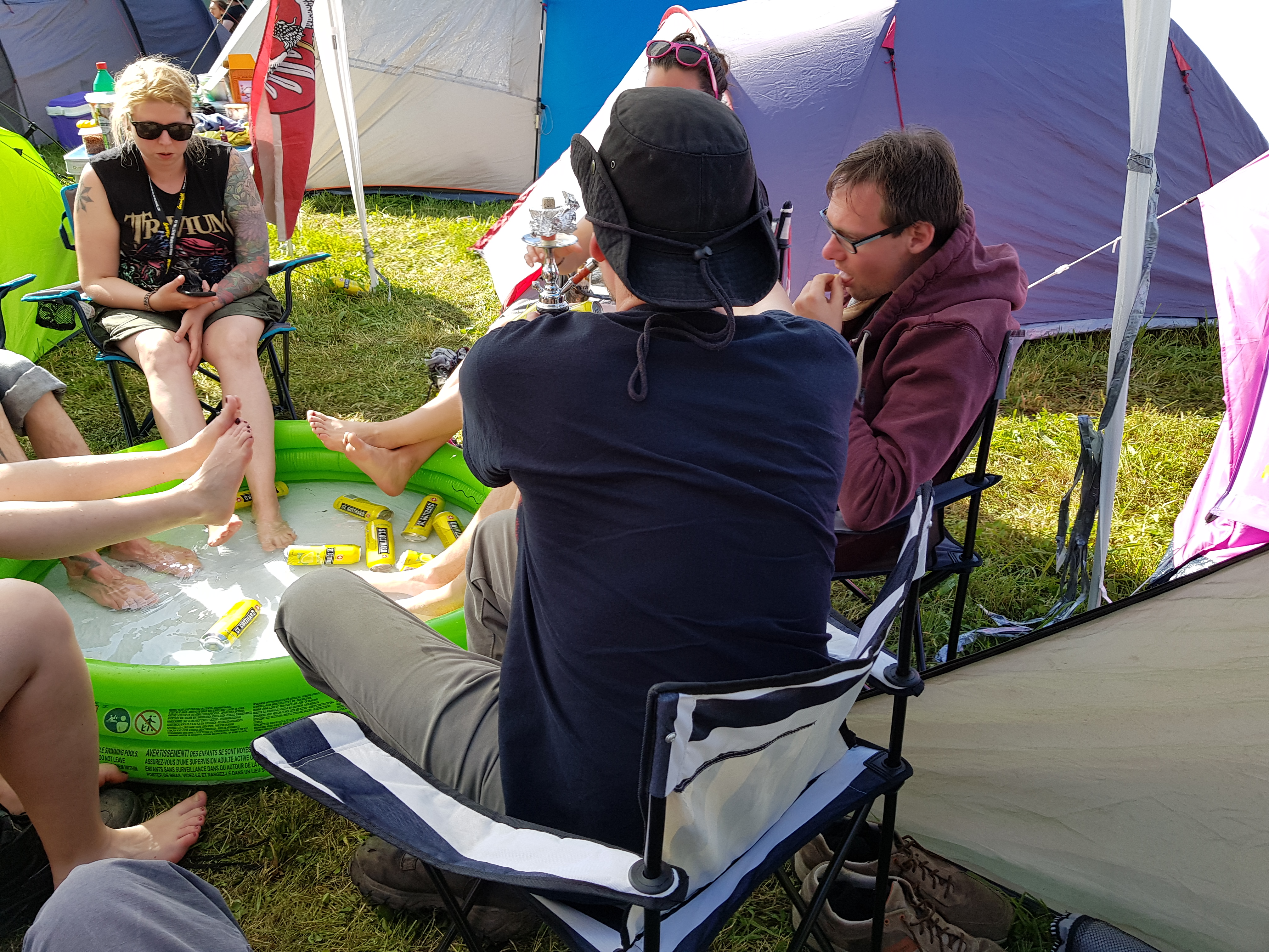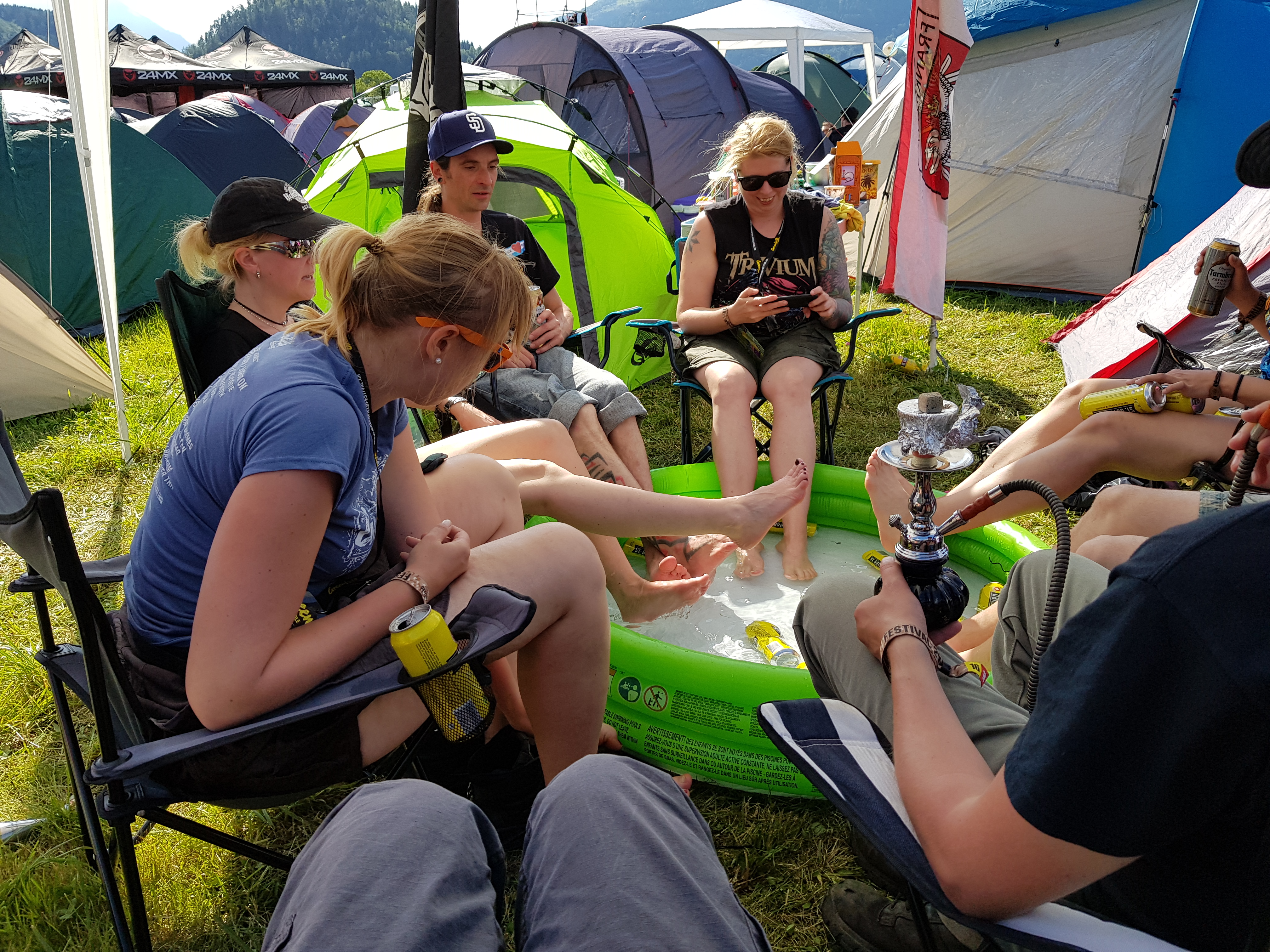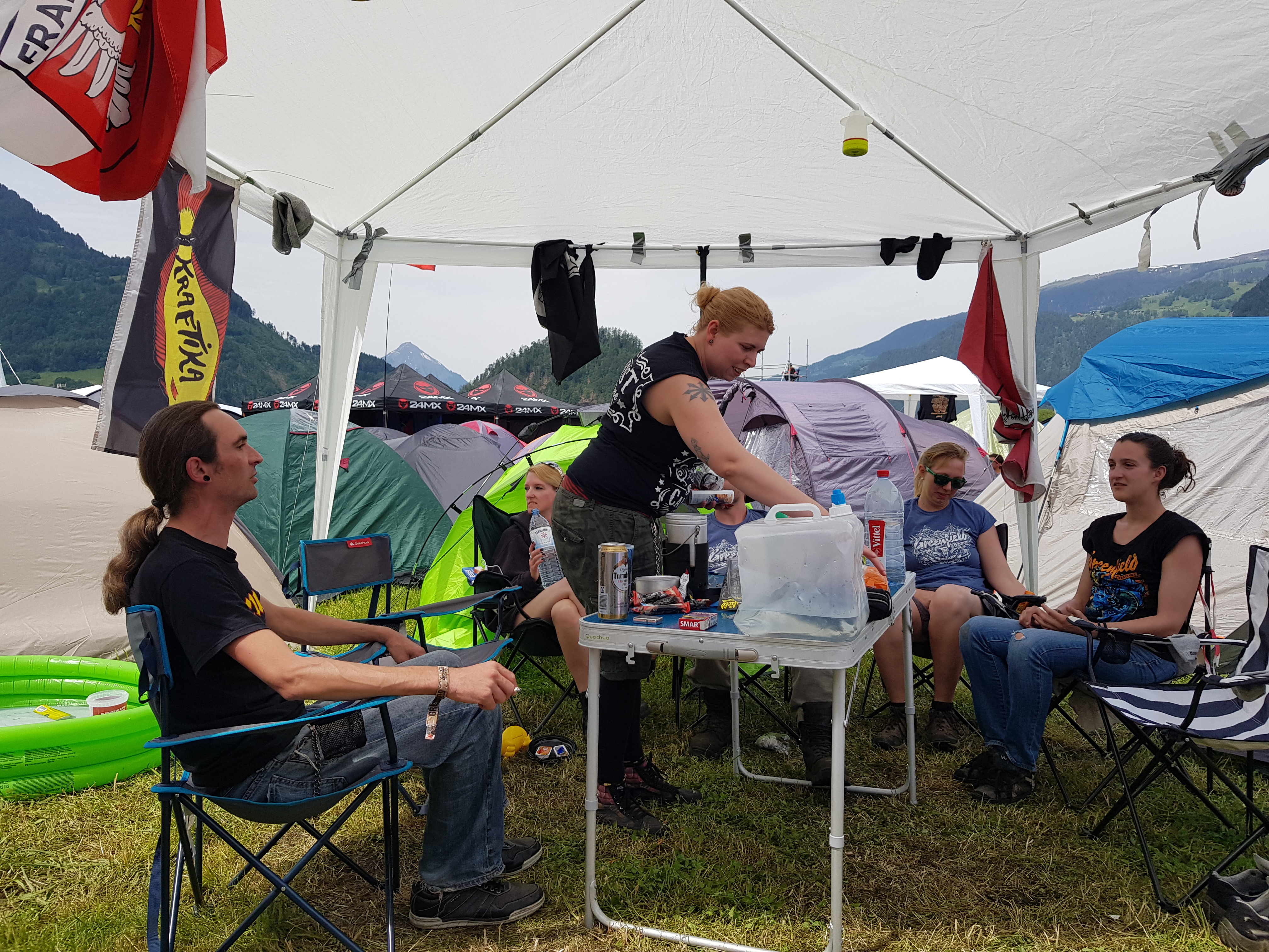 Am Ende der Veranstaltung wurden wir von einem Monsterunwetter außer Landes gespült. Es wurde vorzeitig gewarnt dass da was kommt und wir hatten lange vorher alles trocken abgebaut und verstaut. Tatsächlich wurde das Festival zeitweise evakuiert – alle sollten sich zu ihren Autos begeben und dort ausharren, nach Möglichkeit Personen aufnehmen die mit Öffis angereist waren. Konzerte wurden gestoppt aber nach etwa anderthalb Stunden fortgesetzt. Wir waren da schon längst über fast alle Berge. Das Unwetter zog mit uns nach Norden und hat uns bis Heidelberg begleitet!